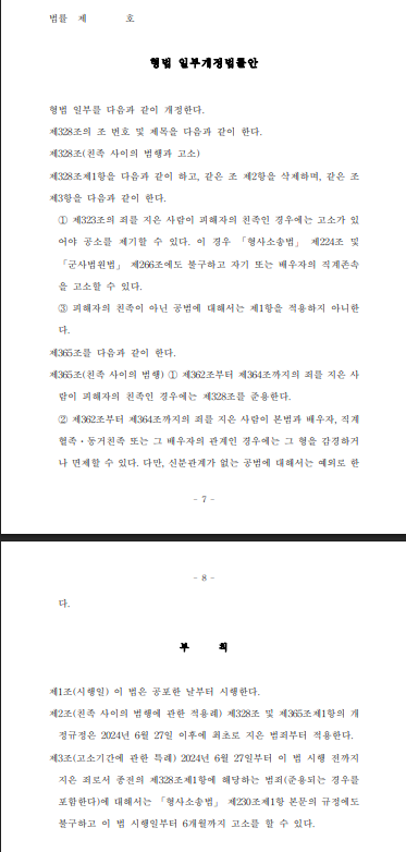 2024년 6월 27일 이후 발생한 피해는 가족이라도 고소가 가능합니다.