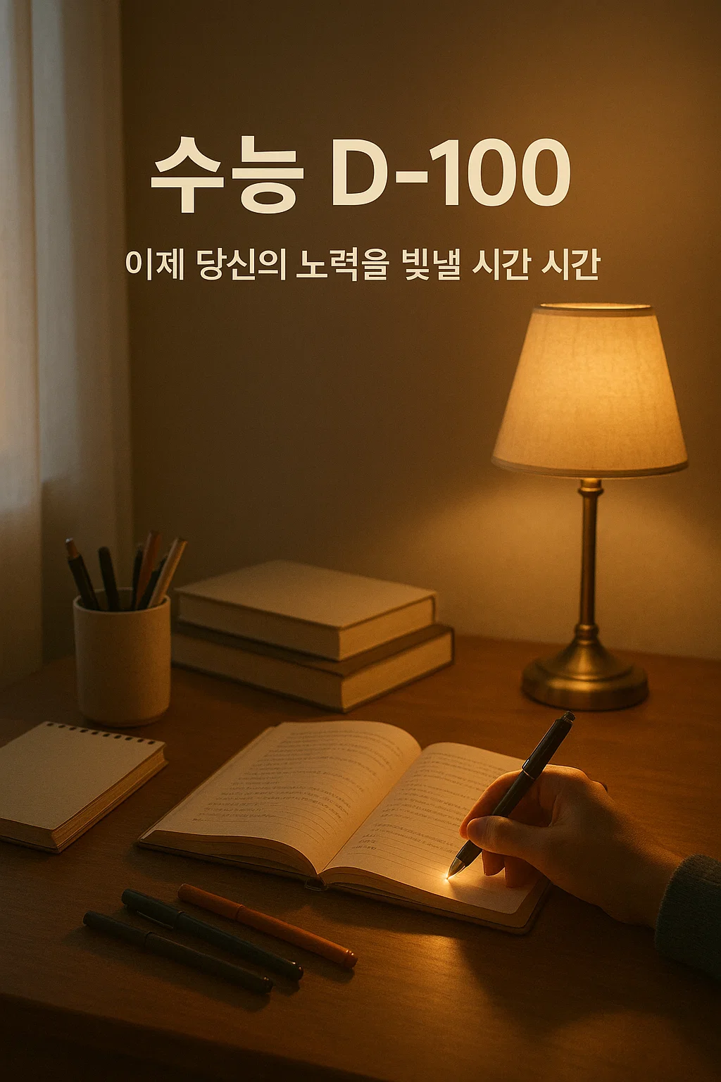수능 D-100, 이제 남은 100일은 여러분의 노력을 완성하는 시간입니다. 이 시기에 가장 필요한 것은 자신을 믿는 마음입니다.