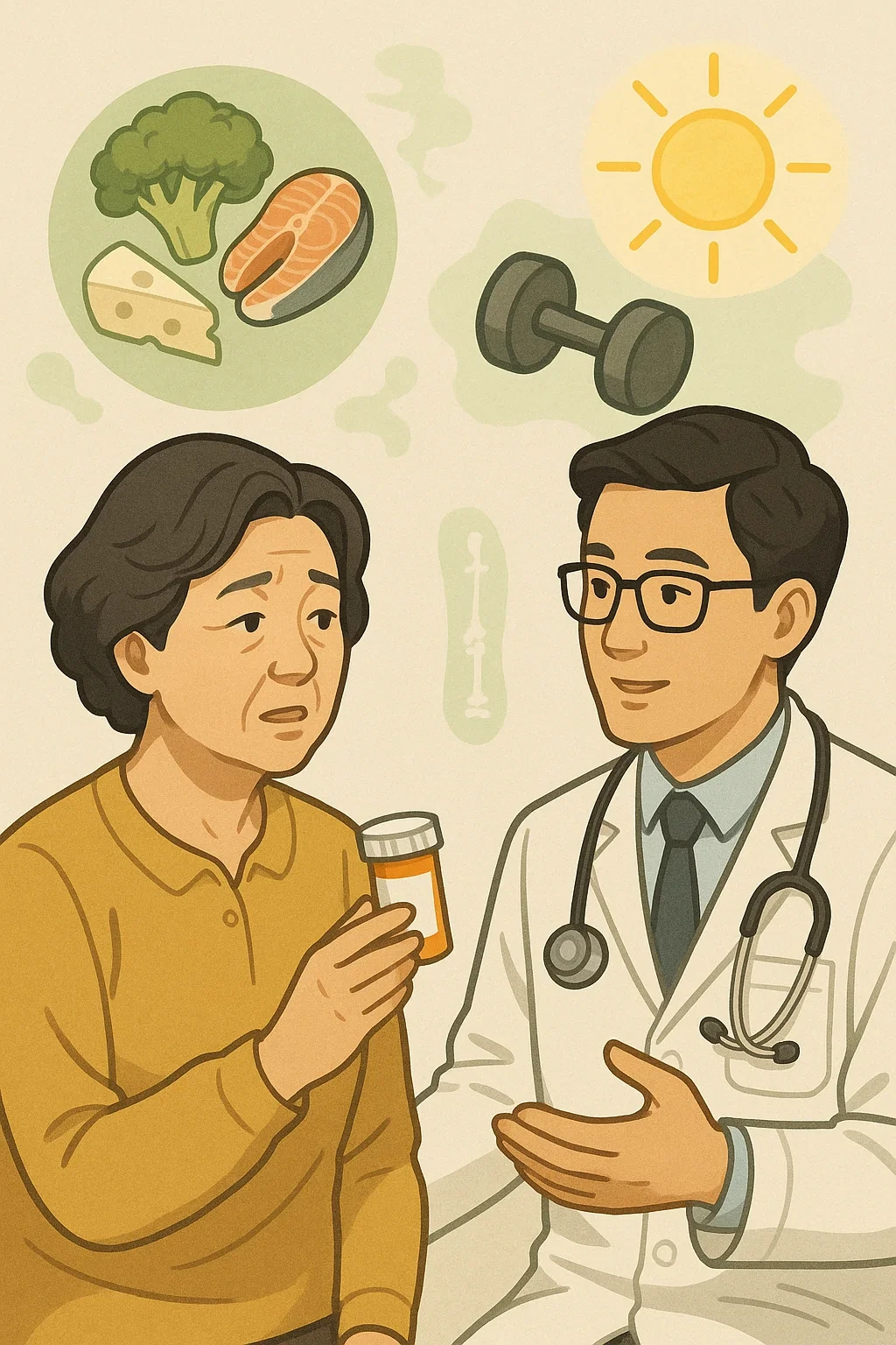 - 호르몬 대체 요법(HRT): 폐경 여성의 에스트로겐 감소를 보완해 뼈 건강을 돕습니다.